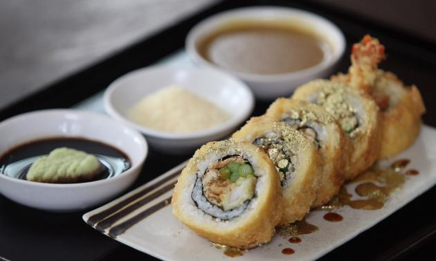 “Kin means gold in Japanese. We don’t normally offer sushi but the Kin Ebi Rolls are being created to mark a special occasion. They are stuffed with prawn tempura and vegetables, wrapped with fried tempura flour and topped with gold,” Akiyama says.