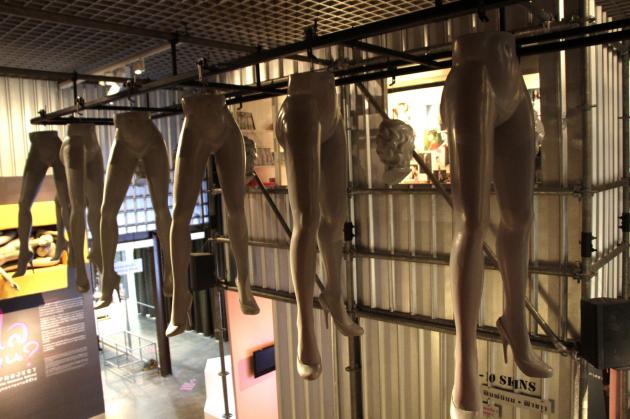From the ceiling, though, hangs the body shape that remains the ideal for most women, not to mention ogling men. It’s a mannequin of Marilyn Monroe in all her 35-22-35 glory, the hourglass that seems to have stopped time in terms of trying to “improve” the female form, waif-like fashion models notwithstanding.