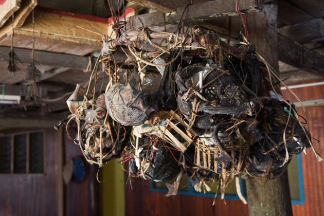 The human skulls, which are considered sacred and off-limits to outsiders, are stored in a special chamber within the Balug.