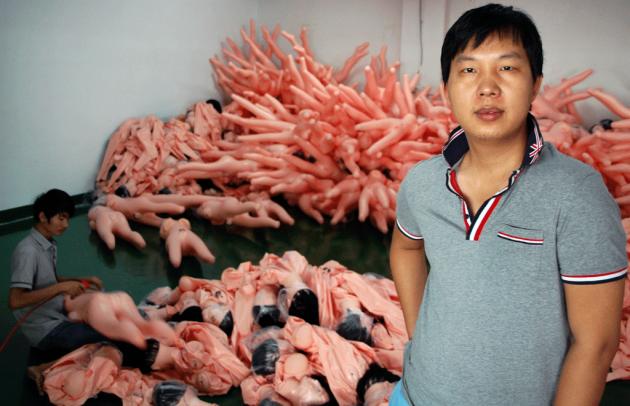 The workers are sitting at rows of tables and, piece by piece, are assembling Xu's hottest-selling product: life-sized inflatable plastic female dolls.
