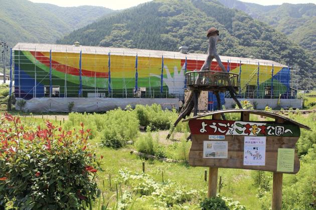 What began as a park built by volunteers in an unused field in Kamaishi for children affected by the 2011 Great East Japan Earthquake is undergoing a major upgrade in the form of a huge mural being painted on the wall of the ironworks facing the park.
