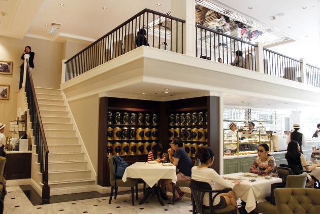 The 280-square-metre tearoom with a mezzanine floor is typically British in terms of decor with a high ceiling, marble floor and floor-to-ceiling windows. It can accommodate about 80 guests in total.