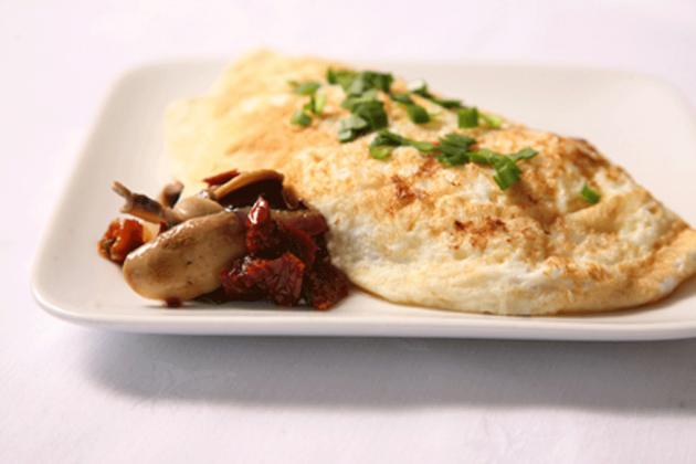 Roll up the omelette and serve with more basil and extra tomatoes if desired.