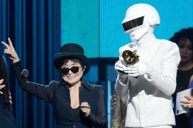 The helmeted performers also won record of the year and best pop duo/group performance for the dance sensation “Get Lucky.”