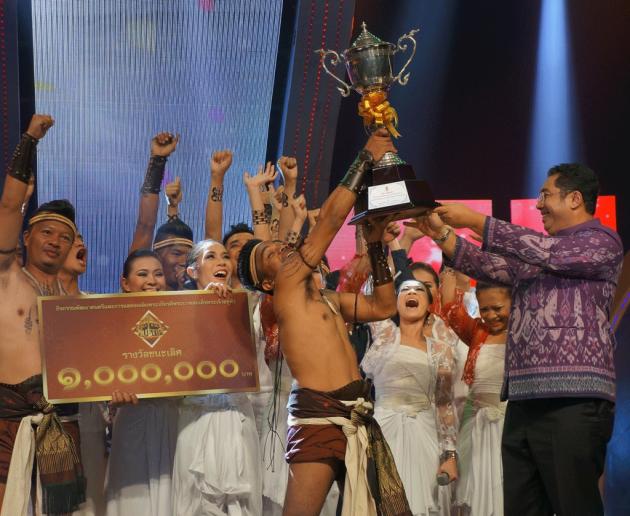Pet Jarat Sang, which is made up of Pojana Petthong, Aran Sangmuang, Acting Sub Lt Chaiyapruek Sithi, Acting Sub Lt Weeraporn Jumjai and Nopadol Pompet, received Bt1 million in cash and the King Cup trophy from Culture Minister Sonthaya Kumplome. They competed against Ekkatan from the Central region, Thep Satha from the South, Paka Lamduan from the Northeast and Rom Dan Chang from the North.