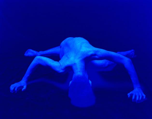 The monochrome photos show nudes bathed in deep blue or crimson, promising to entice the viewer into “another state of being”.