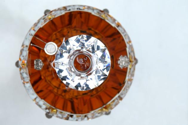 The diamond-shaped baccarat-crystal decanters stand on a crystal base with six radial legs to reflect the decades of the Queen’s enduring reign, and are adorned with Britannia silver, selected for its purity. Each edition includes a pair of lead Cumbria-crystal glasses engraved by Philip Lawson Johnston. There are 60 editions on sale.