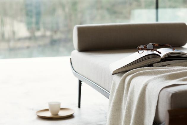 Choose furniture that helps keep your space organised. The tables, chairs and fittings should be made with natural materials, in natural tones. Wooden floors of a natural texture look great with the soft white of tables and chairs, cream-coloured walls and a light-brown sofa.