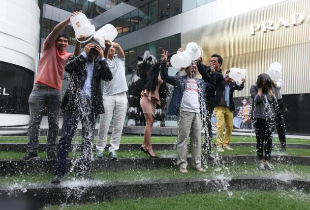 Meanwhile the only nice thing we can say about the Ice Bucket Challenge is that it does promote good causes. The family of bosses at Central Group got the flash-frozen treatment yesterday at Central Embassy. TV host Triphob Limprapat had challenged Suthitham Chirathivat, Bank of Ayudhya CEO Noriaki Gogo dared Tos Chirathivat, and Siam Commercial Bank president Kannikar Chalitarpon told Yuwadee Chirathivat to go get wet.