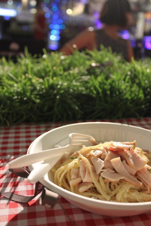 The set menu began with a smoked-salmon sandwich paired with Jacob’s Creek Sparkling Moscato White and smoked chicken cream-sauce linguini with Reserve Chardonnay Adelaide Hills.