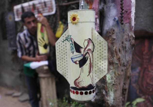 Inside his house, the 33-year-old waiter proudly shows off the rest of his creations: dozens of paintings, some adorned with casings from Israeli bullets or a key, the symbol of Palestinians forced to leave their homes in 1948 when Israel was established.