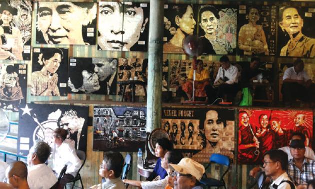 It has not always been such smooth sailing. While Myanmar was still under military rule, the portraits of “the Lady” ruffled feathers and the censors blocked three planned exhibitions in 2009 and 2010. Only in the following year, with liberalism permeating the political air, did he obtain permission to stage his first exhibition.