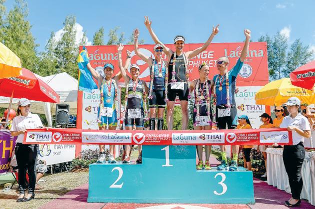 A field of 550 athletes, representing 40 nations, jumped into the waters of Bangtao Bay here in Phuket at 6.30am to tackle the 1.9km swim, then followed it up by a 90km bike ride and running 21km.