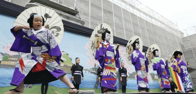 “Ground Kabuki” was on view at the Kureha-za theatre at the Museum Meiji-Mura, an open-air architectural museum and theme park in Inuyama, Aichi Prefecture.