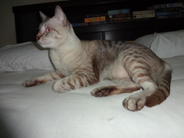 I also understand why my friend would think she was looking at a pregnant cat. Thong has a layer of fat and skin that hangs down from his abdomen.
