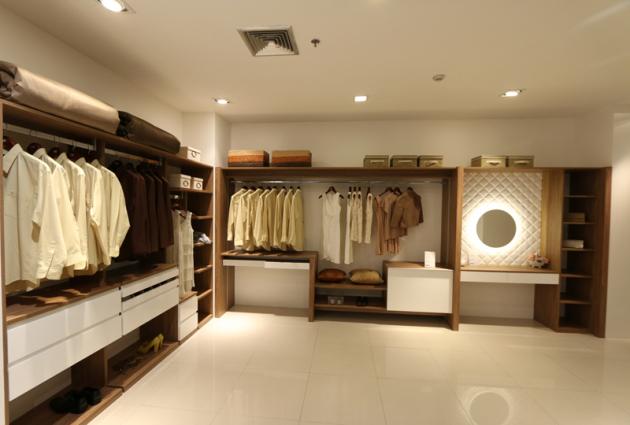 Wardrobe design is also customisable. The basic structure follows the same concept as the kitchen set, though space is obviously a more important consideration. This is “organised furniture”, Kittipong says. You can design your own storage compartments for clothes that fit your available space.