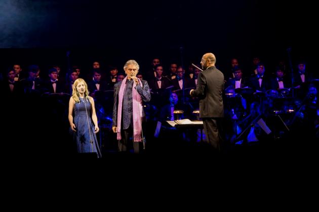 The show was so much fun. And yes, I got to perform with one of my idols, Andrea Bocelli. We sang “Con Te Partiro” together, which is one of the songs that I sang on “America’s Got Talent”. The thing that kept going through my mind while I was singing with him was that I would mess up my Italian, which would have been very embarrassing. It was such a great experience, and after the show he said to me “great job”, and that’s a big deal coming from Andrea Bocelli. I think the show was great and all the artists were phenomenal.