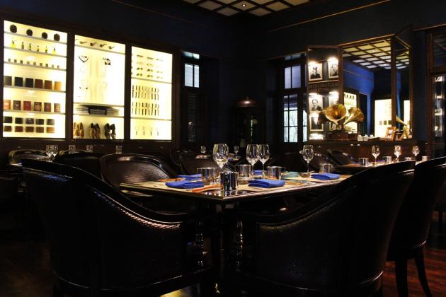 Back in the day, the British in Siam were invested in teak logging, and the floor and walls are all of the same solid, heavy wood. Antique rugs, lamps, fans and other artefacts further evoke the period. Upstairs is a bloke’s “private” den for tasting whiskey and – get this – it’s done up like an interrogation room, with rustic chain fetters bolted to the brick wall.
