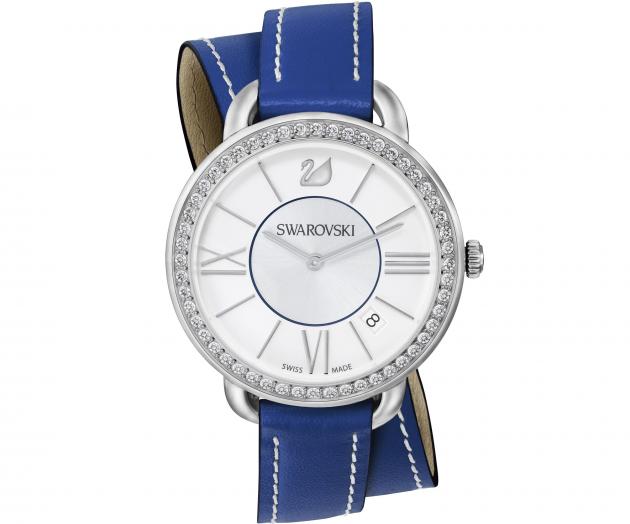 The Aila Day watch mixes and matches with other cuffs and bangles thanks to a double-wrap strap and 52 pave-set crystals that bring a subtle sparkle to the cool stainless steel bezel, while the crisp white stitching on the leather strap adds an element of modernity. The Daytime series has a stainless steel case adorned with 48 pave-set clear crystals and comes with a choice between a sleek stainless steel strap and a smooth calfskin leather strap.