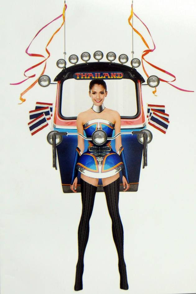 So what does Aniporn think? After all, she’s the one who has to wear the tuk-tuk in front of millions of TV viewers. “The costume is impressive and I like it,” she says. “It’s extraordinary in the way it uses Thailand’s iconic vehicle. When foreigners think of Thailand, they probably imagine visiting the temples and riding in a tuk-tuk.”