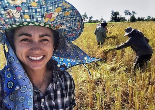 She looks like she’s having the time of her life helping the family harvest golden ears of rice in Nong Mek. “This time of the year is the happiest time for the rice farmers because the rice field is turning yellow,” she explains on Facebook. “Today I went harvesting rice with my family. It’s so much fun! For every plate of rice there is commitment and value behind it. Be grateful for what you have and be careful not to waste moments like this.”