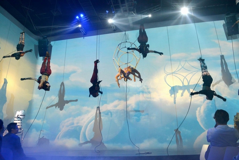 The adventures unfold on a high-tech stage measuring 1,000 square metres and boasting a screen larger than three IMAX theatre screens.