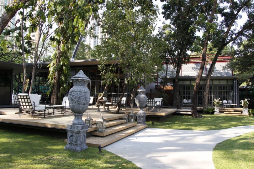 Her great-grandfather Lert Sreshthaputra (1872-1945) – better known as Nai Lert– was a notable businessman who ran Thailand’s first public transportation services including horse-pulled carriages, a white bus and a white ferry and was later given the royal title Phraya Bhakdinorasreth by King Vajiravudh (King Rama VI). He built this home on the bank of Saen Saeb canal in 1915 and it passed down through the generations from his daughter, the late Thanpuying Lersakdi Sampatisiri, to her children, Bilaibhan Sampatisiri and Sanhapit Bodiratnangkura who is Naphaporn’s mother.