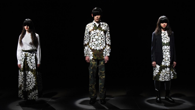 Designer Tsukasa Mikami opened Tokyo fashion week Monday with a show featuring male and female models in floral silkscreen-printed garments and combat boots.