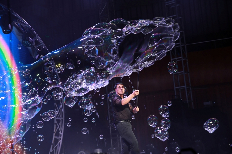 “I grew up surrounded by nature and rainbows were one of the elements of nature I liked most. So it’s great to be able to create the visual effect of a rainbow with bubbles and bring it onstage.”