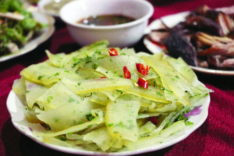 The cuisine of the Northwest, which is home to vast bamboo forests, includes the best bamboo-shoot dishes. We had stir-fried bamboo with a strong bitter taste that lingered but gradually turned sweet in the mouth.