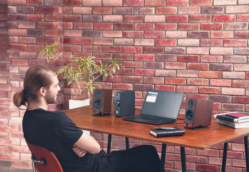 The CAS-1 also pleases when you are sitting at your desk. The two speakers point 8-degrees upwards to ensure sound quality when you are seated 75 to 200 cm away. By tilting the separate speakers into the optimal position, they deliver better sound straight to the ears, without unwanted reflection or interference.