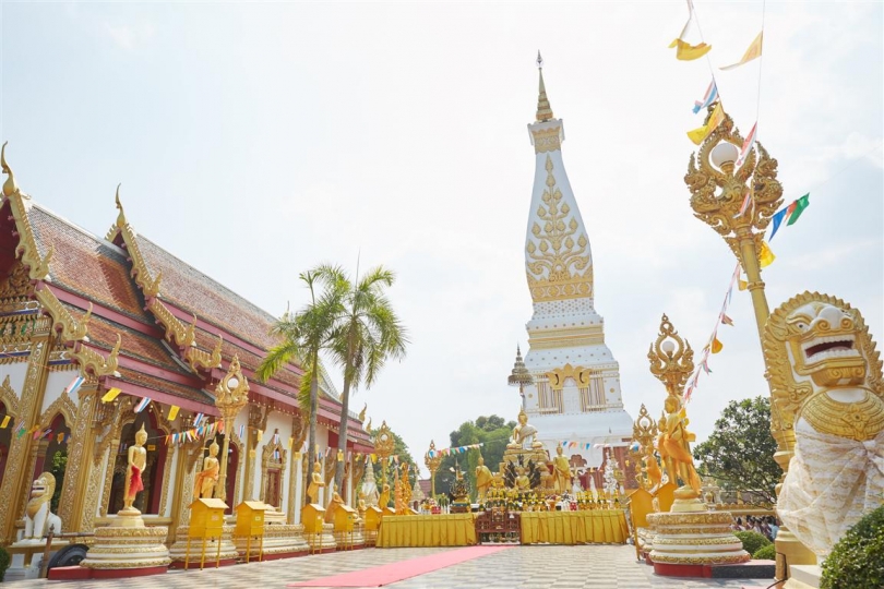 FOR VISAKHA BUCHA DAY tomorrow, marking the anniversary of the Lord Buddha’s birth, enlightenment and death, The Mall Group has brought to Bangkok replicas of the deeply symbolic phra that pagodas for which northeastern Nakhon Phanom province is famous.