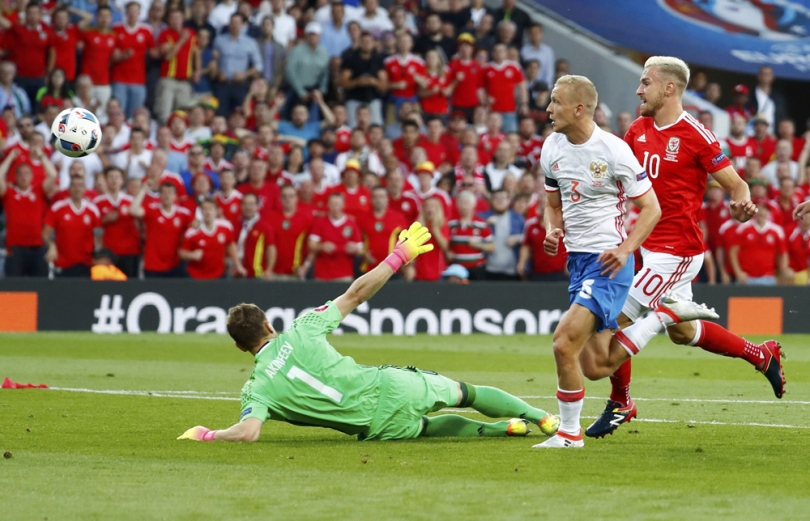 Russia survived that but were behind when Allen played a perfect through ball for Ramsey, just onside, to place his shot over Akinfeev.