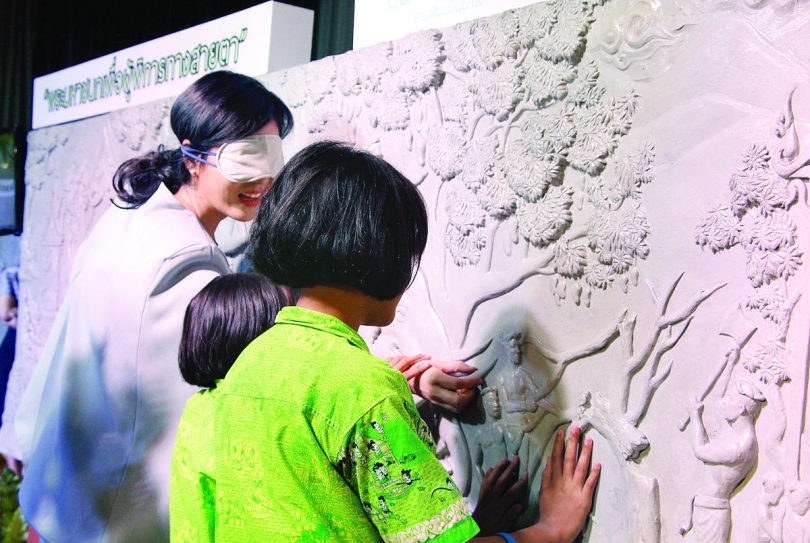 Net, a Prathom 6 student at the Bangkok School for the Blind, and his friends were among the first sight-impaired youngsters to test the “Bas-relief Sculpture and Animation of Mahajanaka for the Visually Impaired”, a pilot project initiated by Pun Fun Pun Yim, a non-profit organisation that focuses on the health of the underprivileged, and the Thai Health Promotion Foundation. The aim is to provide a barrier-free experience for the blind.
