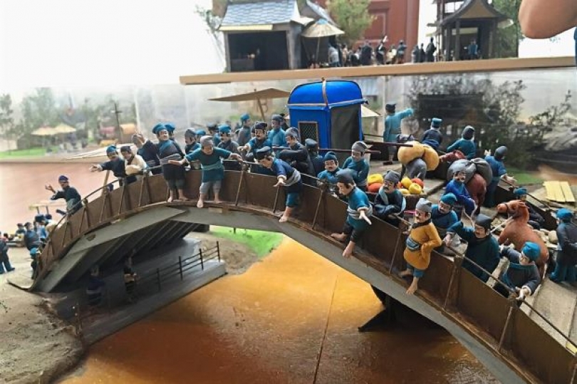 Regarded as China’s national treasure, the silk scroll painting measuring 5.25m x 25.5cm features a river meandering from countryside through to a busy city.