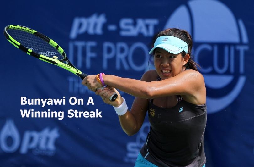 Bunyawi who just turned 18 last week rallied back from 3-5 down to win her six straight match in a row after claiming the title in a local TATP Tour at the nearby Muang Thong Tennis Academy.