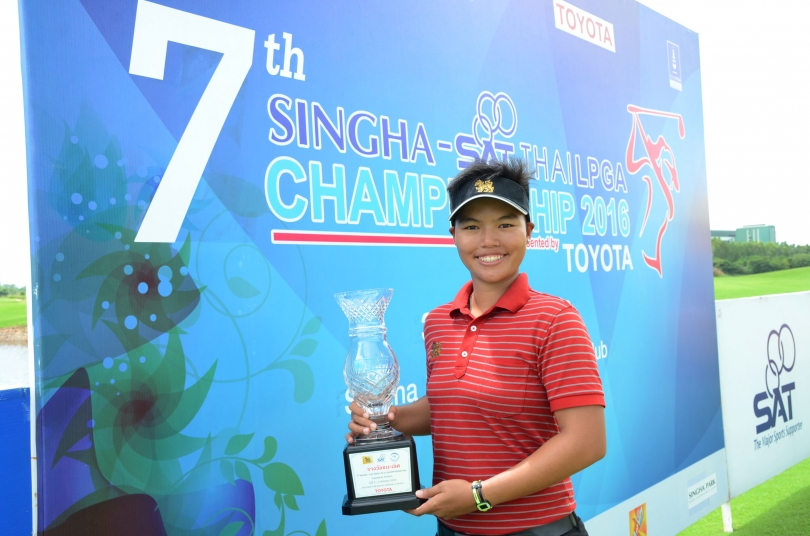 The 22-year-old from Surin hit three birdies against a lone bogey for an ending 70 and a three-day total of nine-under-par 207 to become the first player to defend a title in the eight-year history of the Thailand Ladies Professional Golf Association.