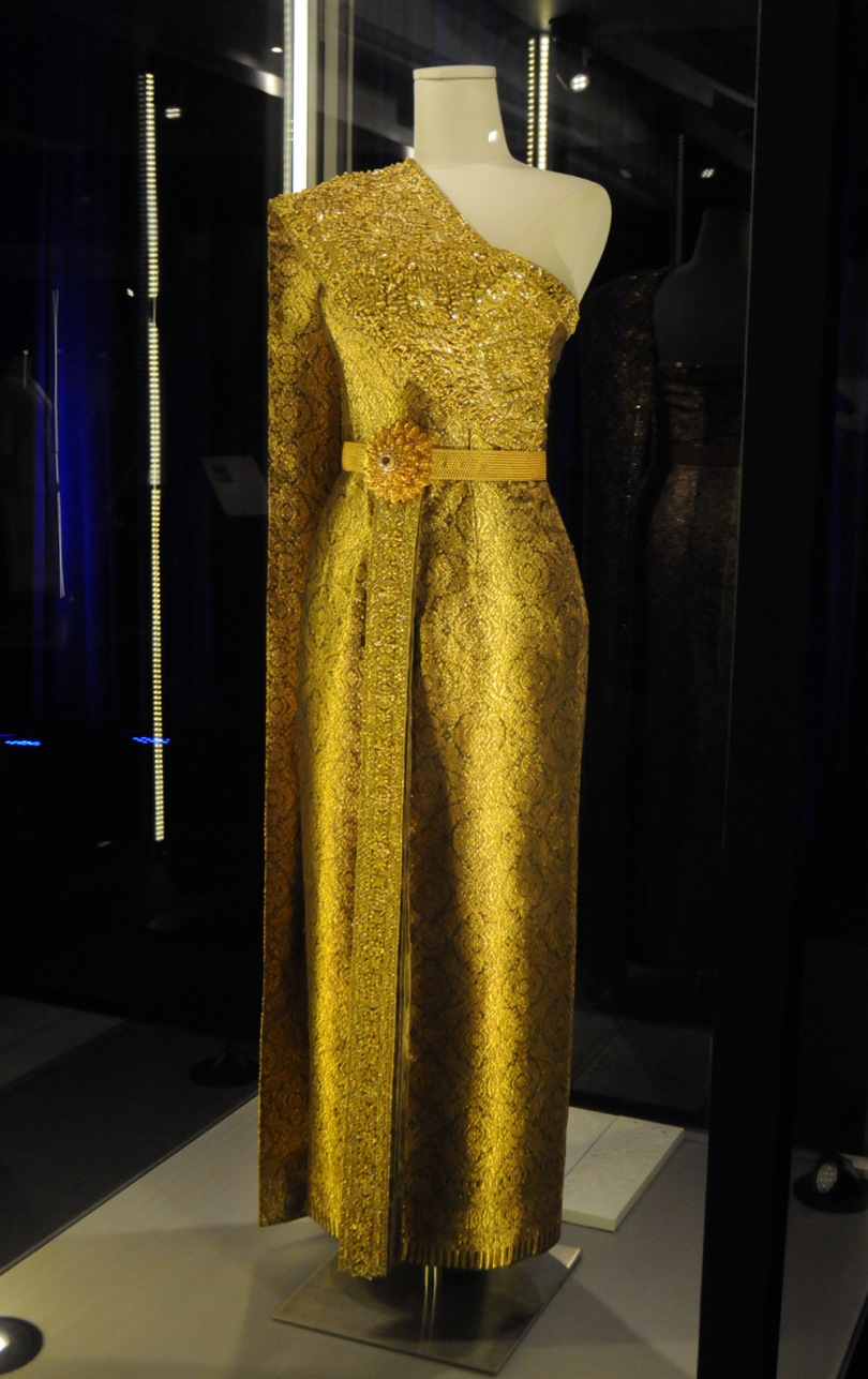 The seven royal gowns on display in the exhibition were made by the great Pierre Balmain and superbly embroidered in silk thread by the House of Lesage in Paris. This is the first time the Queen Sirikit Museum of Textiles has granted permission for their public display.