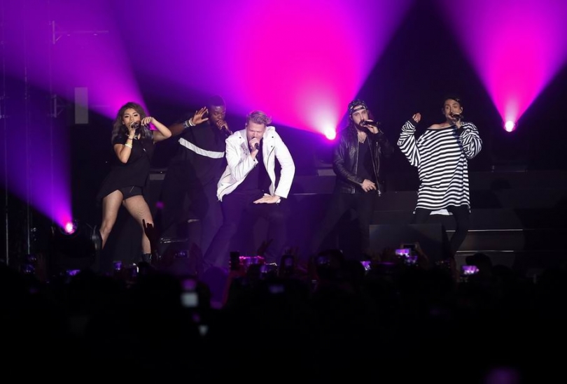 The concert venue’s easy access by Skytrain meant that even the heavy downpour early in the evening didn’t put a damper on the show, with many of the fans, both Thai and foreign, coming along with mum and dad. At 9pm sharp, silhouettes of group members –Avi Kaplan, Mitch Grassi, Scott Hoying, Kirstin Maldonado and Kevin Olusola – appeared on stage as “Cracked”, a track from their first studio album boomed out to loud cheers. That was followed by another original song, “Na Na Na” and the first cover of the night OMI’s “Cheerleader”.