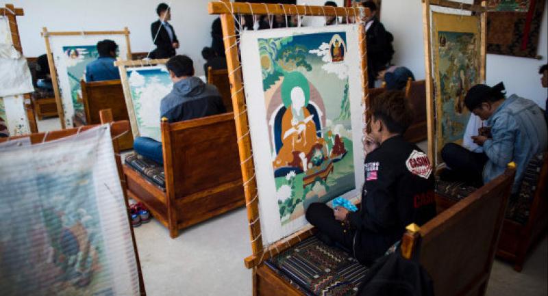 The 34-year-old is one of dozens of students at a school in Lhasa learning the medieval Tibetan art of “thangka” – minutely detailed paintings depicting Buddhist deities or symbols, usually on cotton canvas or silk scrolls.