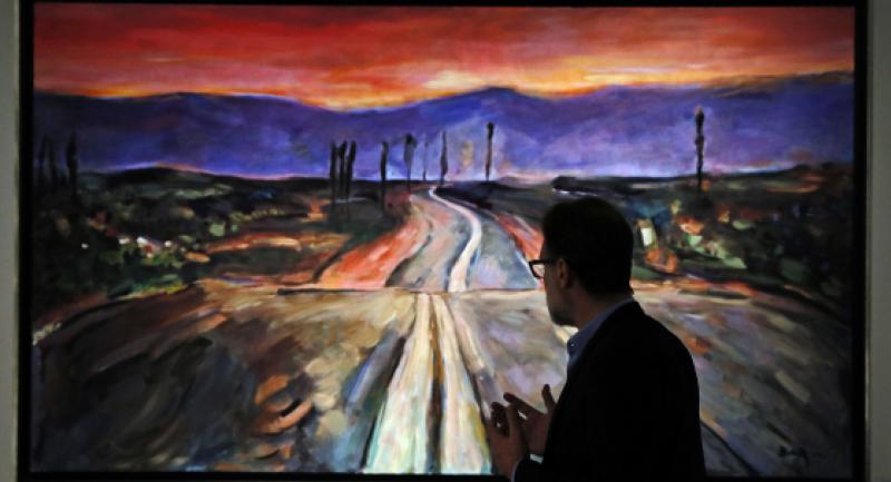 One of the standout works of the exhibition shows an “endless highway” - a clear allegory of the artist’s life: always on the road, between two towns, two hotels.