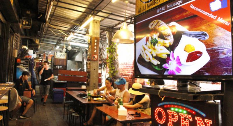 Further along in Section 4, close to Gate 3, is Buckingham (@BuckinghamClub), a cosy, friendly, no-frills bar that’s great for smoothies, beer and whisky and rounds out its appeal with live music. Prices start at just Bt100. The place stays open well after the market stalls are closed at 8pm, but keep in mind that all the market gates close at 8 too except for the main one, so you’ll have a long walk to the MRT.