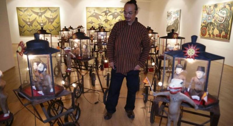 Dono, 56, has done much to revive fading Indonesian cultural traditions, including the shadow puppets known as wayang kulit and the wooden tribal tau tau sculptures of Sulawesi, which join the clattering becaks in his conceptual artworks.