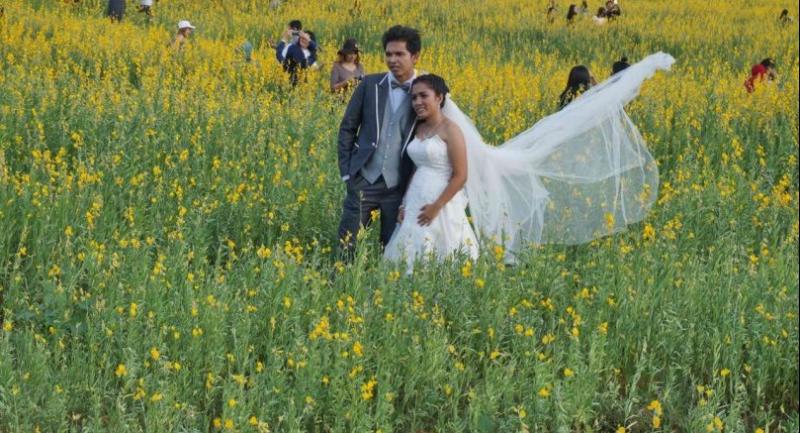 He started growing the flowers three months ago. The sunhemps, which have already been in full bloom for a week, are expected to last for another week or two.