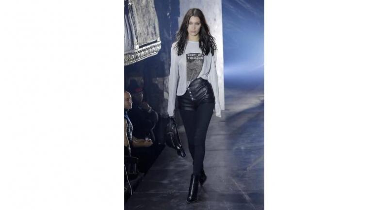 It was a conservative look, with just a hint of cleavage. Models of the moment Bella Hadid and Kendall Jenner were among those who powered down the criss-crossing runway, the lights flashing over the decayed backdrop that made it look like a grandiose nightclub from the past.