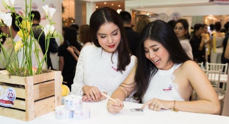 Attending the celebratory event at CentralWorld were celebrities and their families, including Rinlanee “Joy” Sripen, Worrawech “Dan” Danuwong and Ungsumalynn “Pattie” Sirapatsakmetha, and best friends Thanapob “Tor” Leeratanakajorn and Pachara “Peach” Chirathivat.