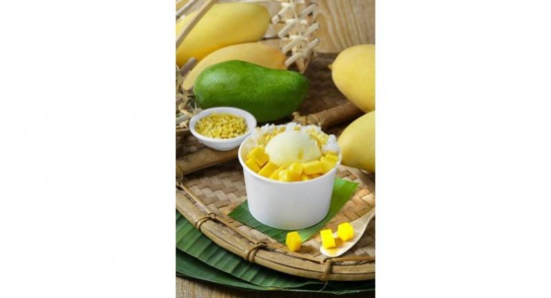 Cool down with seasonal fruit ice cream made of mango, lychee, durian, and coconut. The ice cream comes with a freshly cooked sweet roll waffle prepared to EK Elephant King’s special recipe.