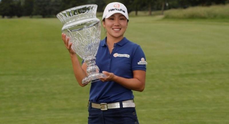 Kim said the concentration required in the difficult, windy conditions meant she didn't realize until the final hole that she had a two-stroke cushion.