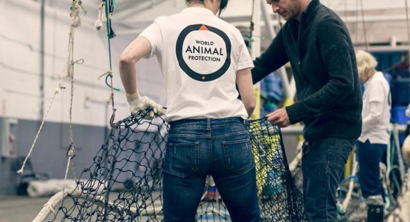 World Animal Protection staff work to clear the oceans of “ghost” fishing nets./Courtesy of World Animal Protection