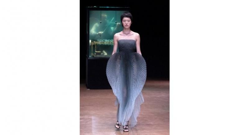 The designer – known for embracing hi-tech techniques – said she had been inspired by the musicians. “I found out about how these artists had been working for 10 years on developing underwater techniques for both making music and singing” and thought it was too good to miss.